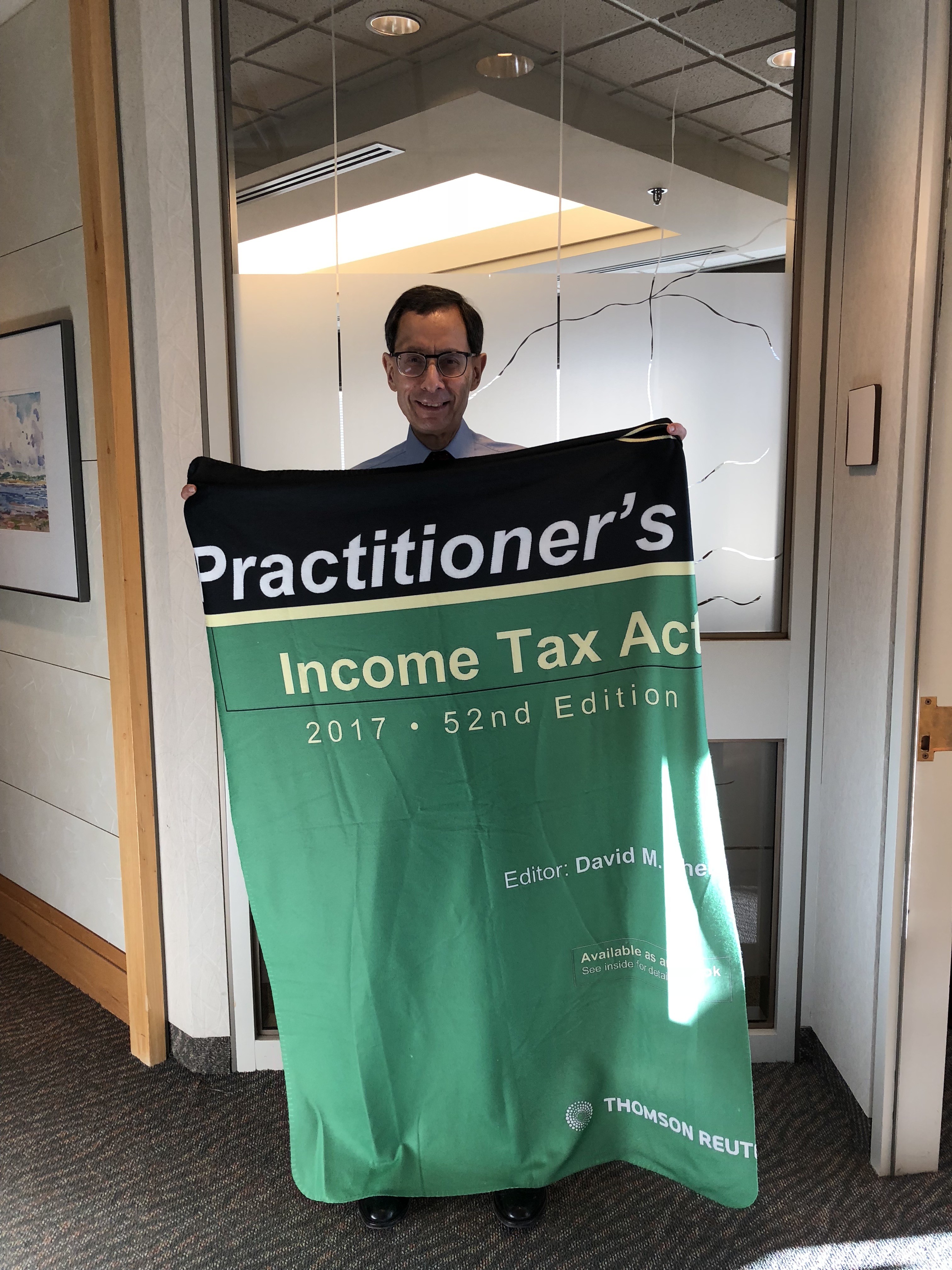 January 2018 photo of blanket made for Cy Fien -- copy of David Sherman's "Practitioner's Income Tax Act" |