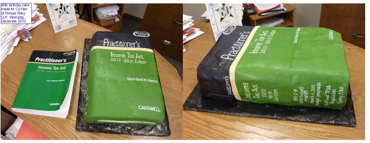 2010 photo of birthday cake made for Cy Fien as a copy of David Sherman's "Practitioner's Income Tax Act" |