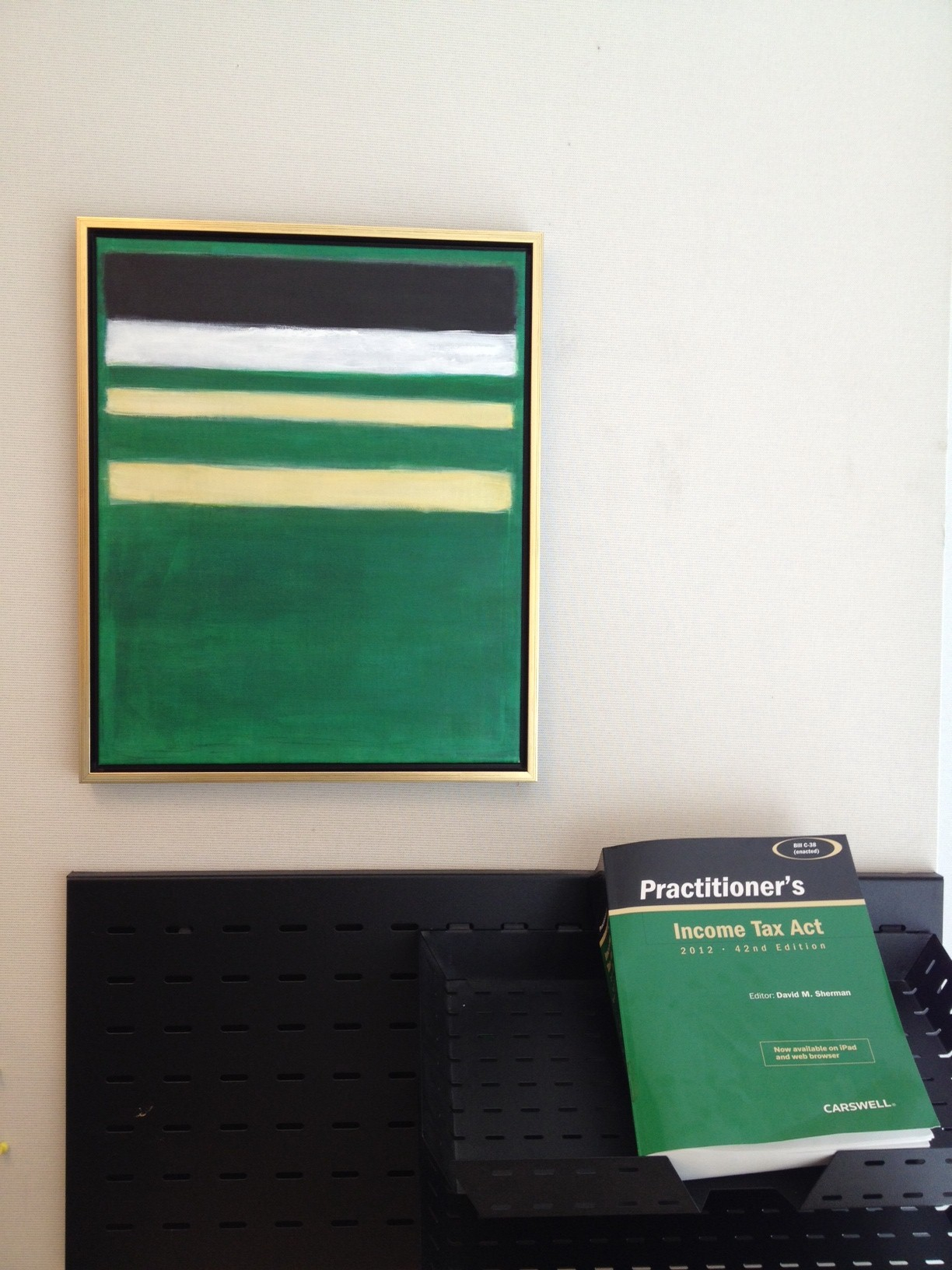 Photo by Christine Man at McMillan LLP of "PITA" painting (by Kathy Wang of McMillan LLP) hanging in her office, together with PITA 42nd edition |